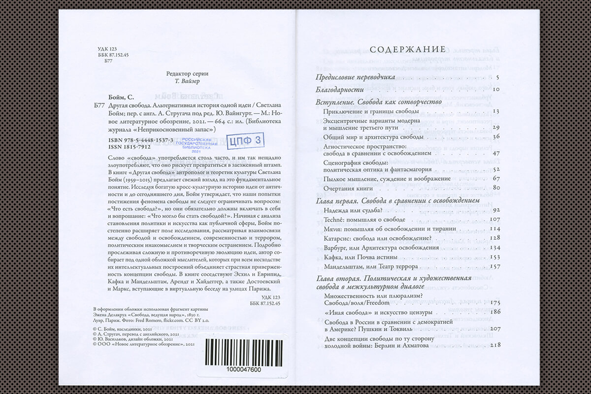 Бойм, Светлана Юрьевна. Другая свобода. Альтернативная история одной идеи. Москва, 2021