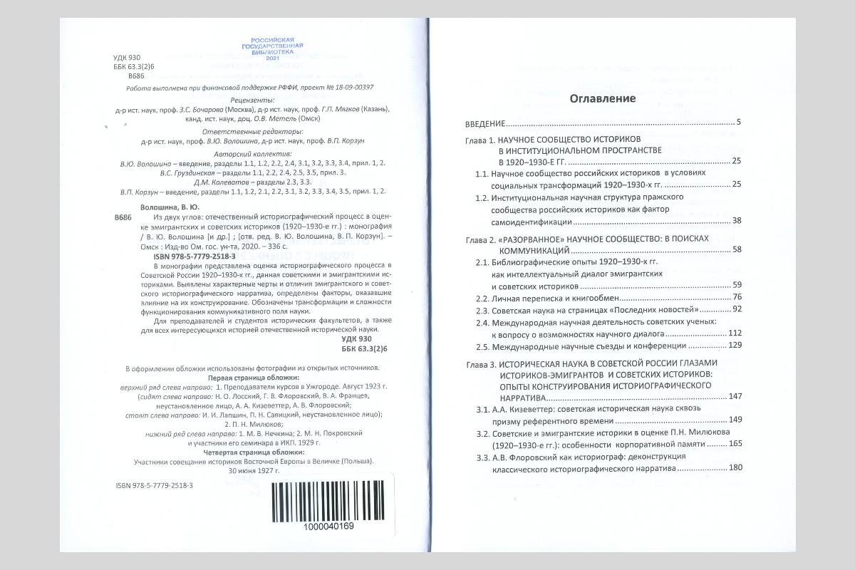 Волошина, Валентина Юрьевна. Из двух углов: отечественный историографический процесс в оценке эмигрантских и советских историков (1920—1930-е гг.). Омск, 2020.
