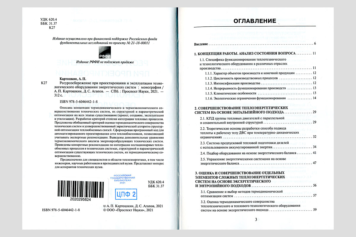 Картошкин, Александр Петрович. Ресурсосбережение при проектировании и эксплуатации технологического оборудования энергетических систем. Санкт-Петербург, 2021.