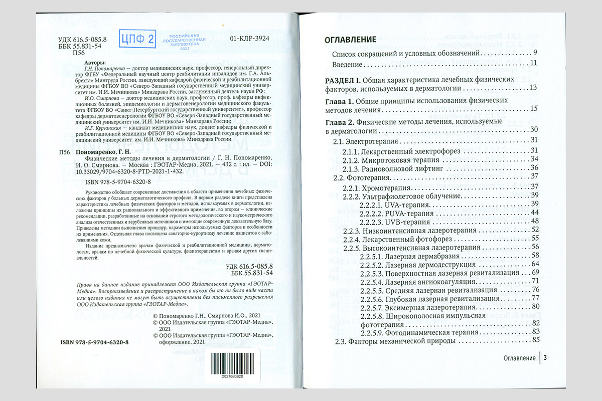 Пономаренко, Геннадий Николаевич. Физические методы лечения в дерматологии: руководство. Москва, 2021.