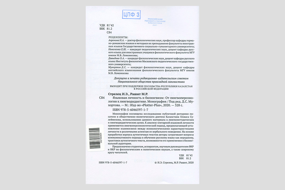 Стрелец, Илья Эрнстович. Языковая личность и билингвизм: от лингвоперсонологии к лингводидактике. Москва, 2020.