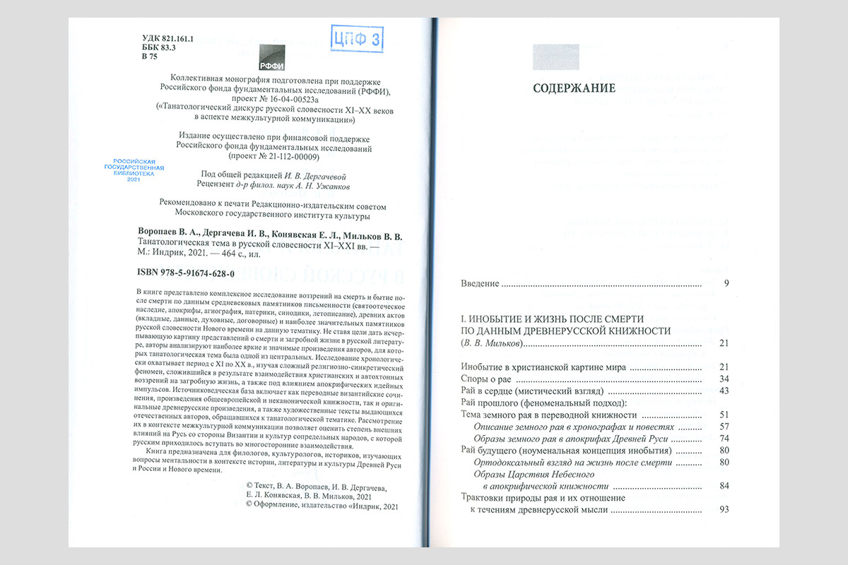 Танатологическая тема в русской словесности XI—XXI вв.. Москва, 2021.