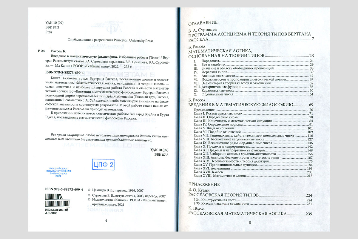 Рассел, Бертран. Введение в математическую философию: избранные работы. Москва, 2022.