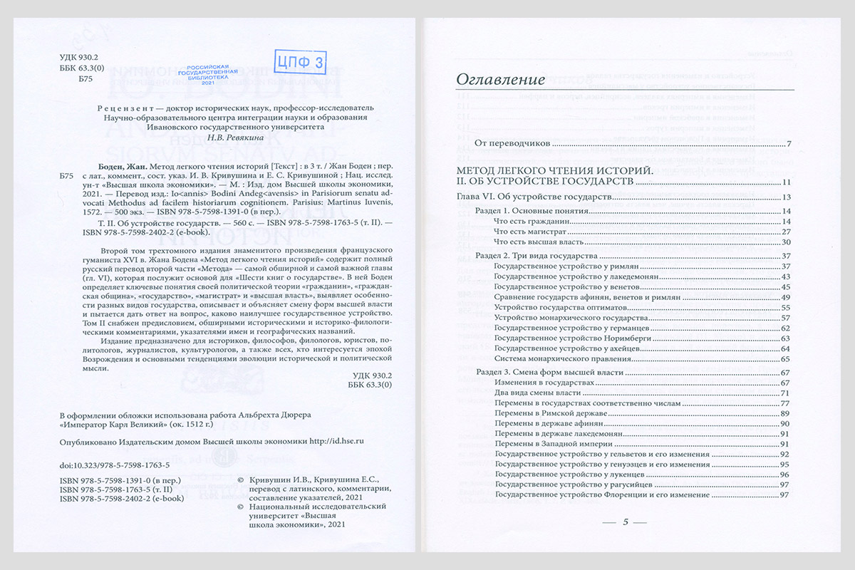 Боден, Жан. Метод легкого чтения историй: [в трех томах]. Москва, 2018-. 2: Об устройстве государств. 2021.