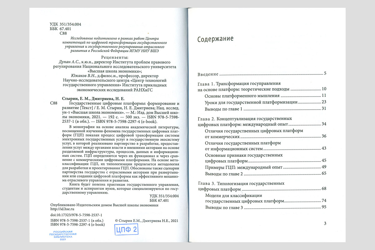 Стырин, Евгений Михайлович. Государственные цифровые платформы. Формирование и развитие. Москва, 2021.