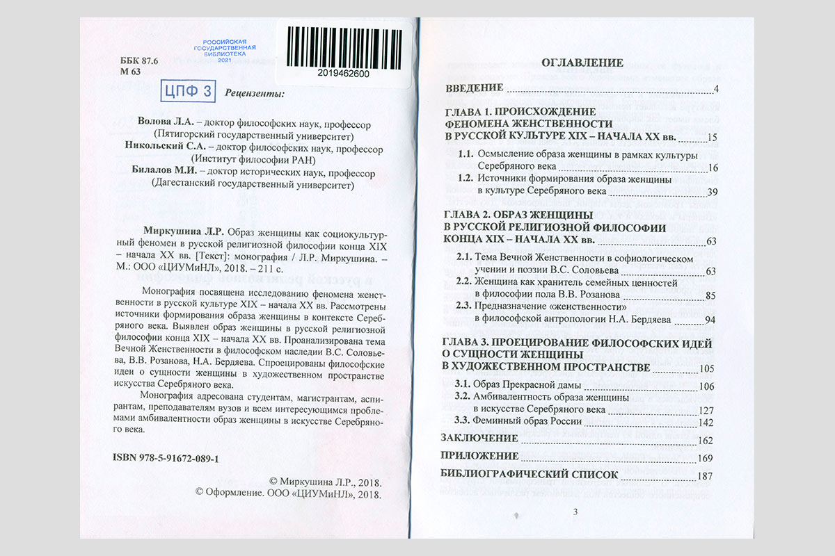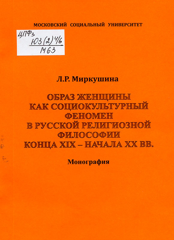 Миркушина, Лия Рафиковна. Образ женщины как социокультурный феномен в русской религиозной философии конца XIX — начала XX вв. Москва, 2018.