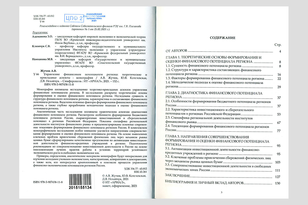Жучик, Алина Владиславовна. Управление финансовым потенциалом региона: теоретические и прикладные аспекты. Симферополь, 2021.