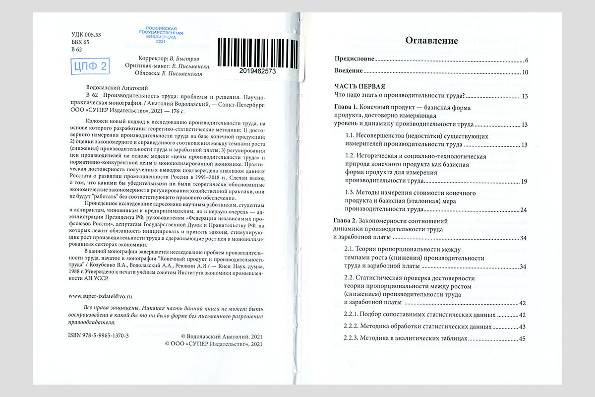 Водолазский, Анатолий Арсентьевич. Производительность труда: проблемы и решения. Санкт-Петербург, 2021.