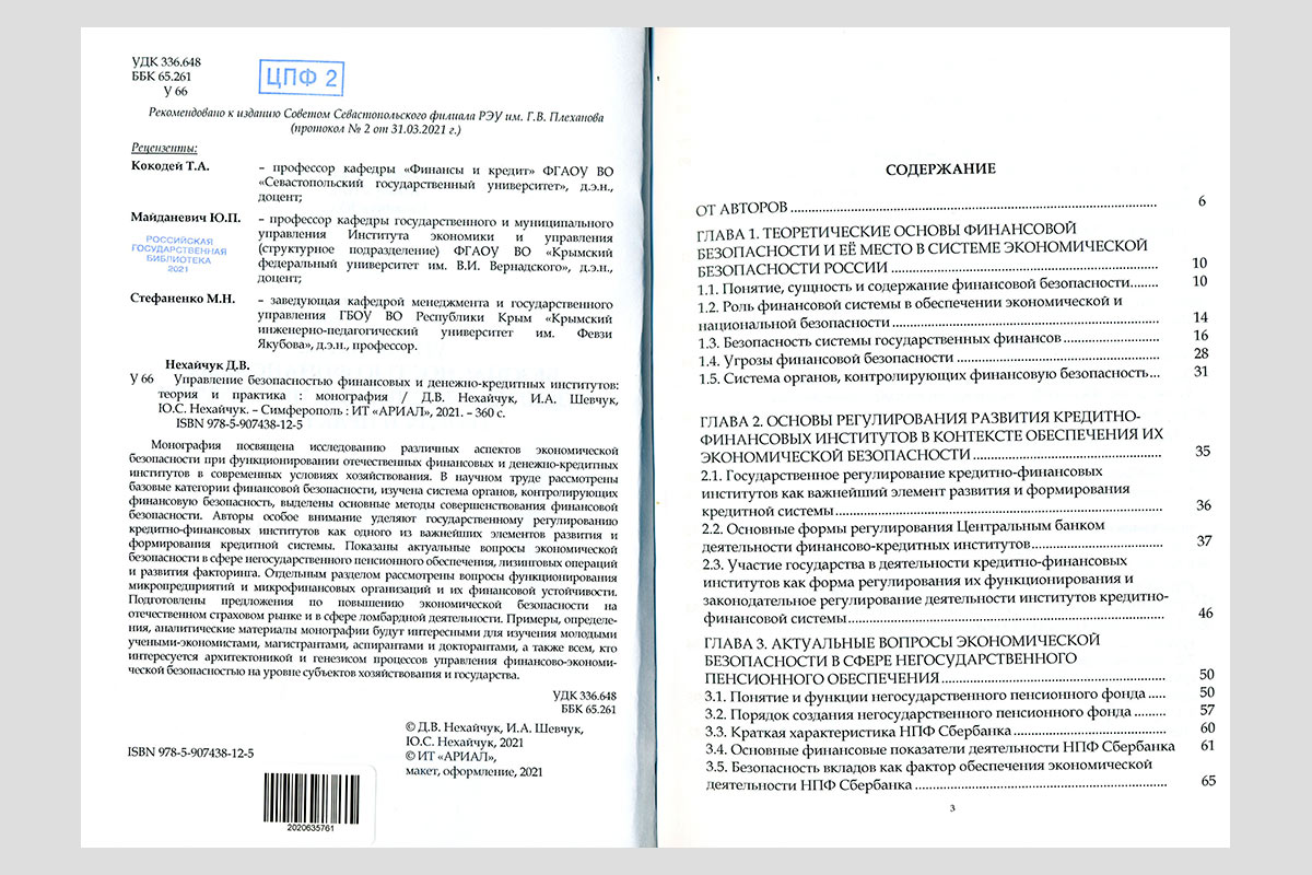 Нехайчук, Дмитрий Валериевич. Управление безопасностью финансовых и денежно-кредитных институтов. Симферополь, 2021.