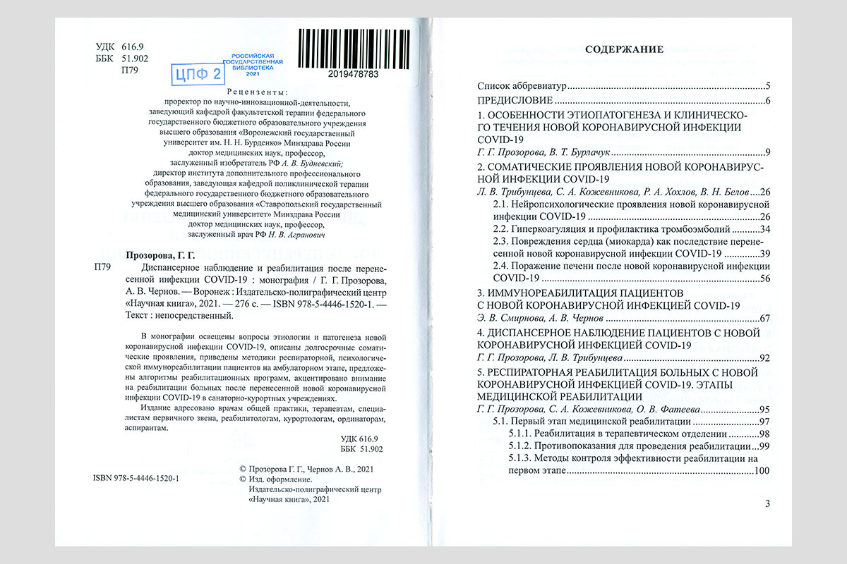 Прозорова, Галина Гаральдовна. Диспансерное наблюдение и реабилитация после перенесенной инфекции COVID-19. Воронеж, 2021.