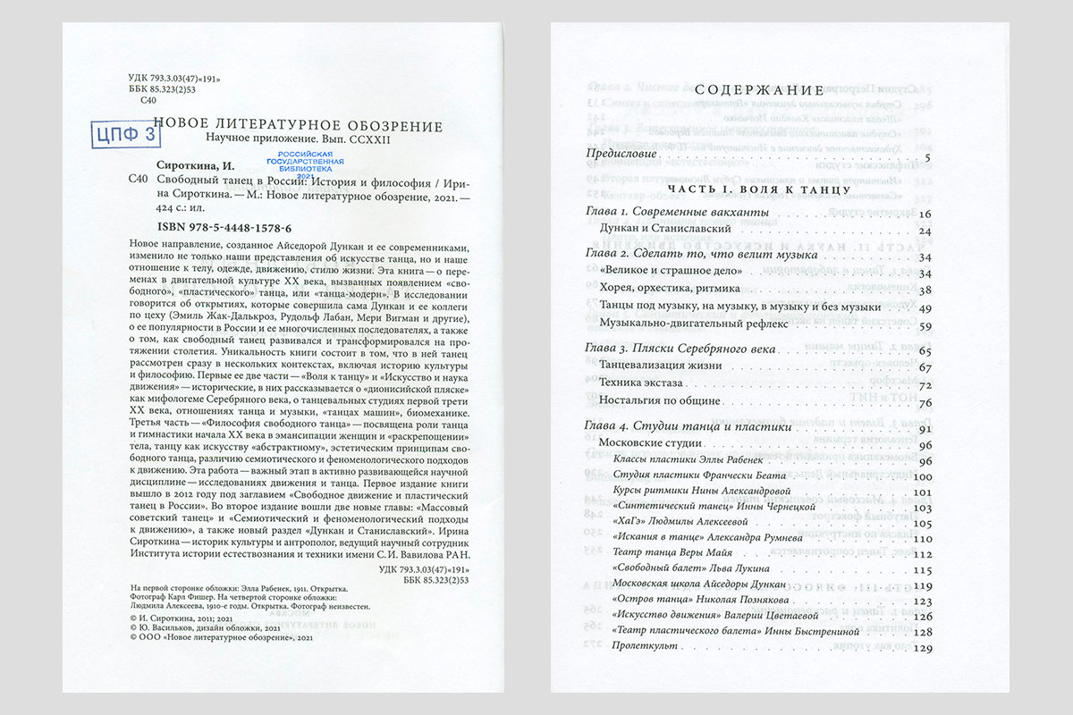 Сироткина, Ирина Евгеньевна. Свободный танец в России: история и философия. Москва, 2021.
