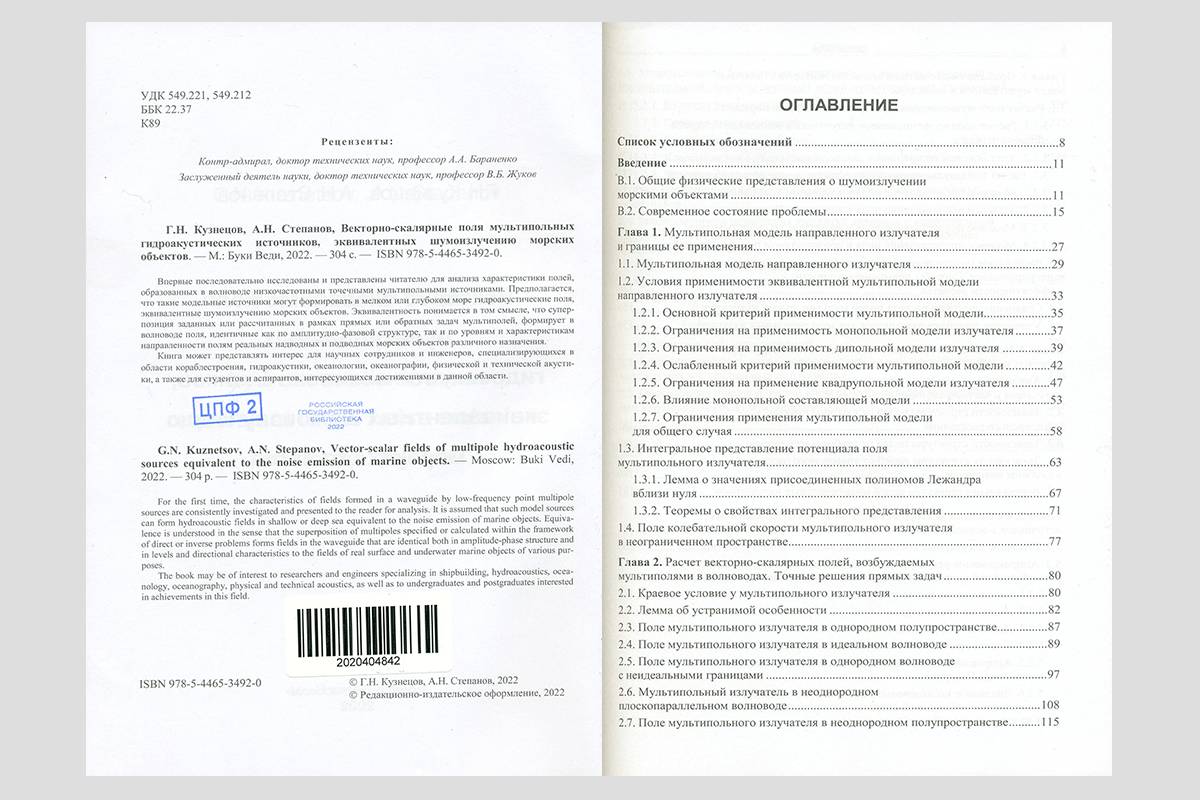 Кузнецов, Геннадий Николаевич. Векторно-скалярные поля мультипольных гидроакустических источников, эквивалентных шумоизлучению морских объектов. Москва, 2022.