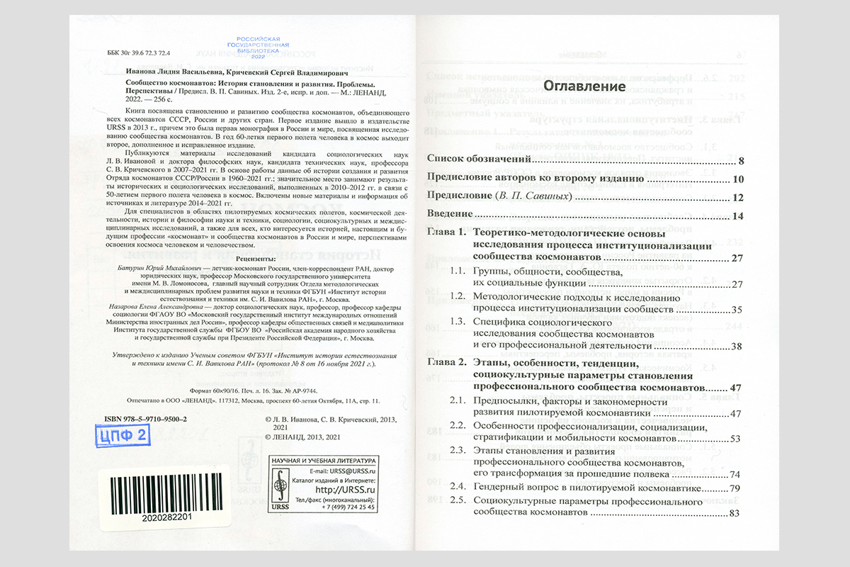 Иванова, Лидия Васильевна. Сообщество космонавтов: история становления и развития, проблемы, перспективы. Москва, 2022.