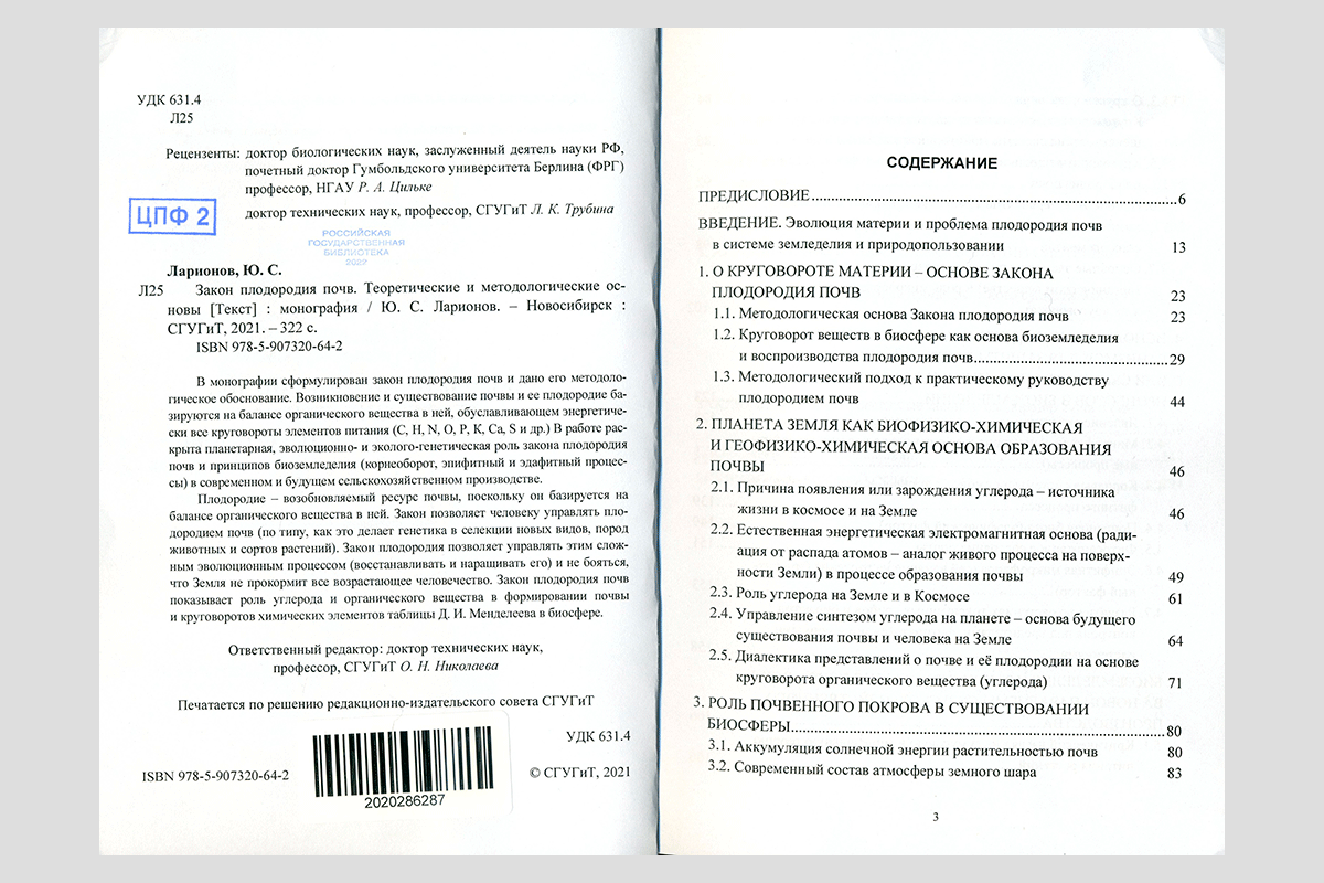 Ларионов, Юрий Степанович. Закон плодородия почв. Теоретические и методологические основы.