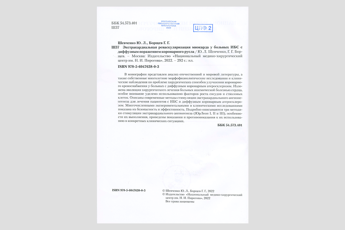 Шевченко, Юрий Леонидович. Экстракардиальная реваскуляризация миокарда у больных ИБС с диффузным поражением коронарного русла. Москва, 2022.