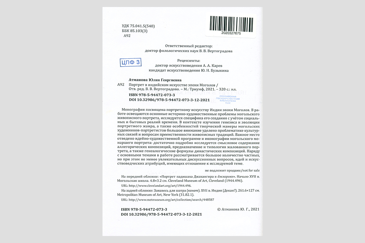 Атманова, Юлия Георгиевна. Портрет в индийском искусстве эпохи Моголов. Москва, 2021.