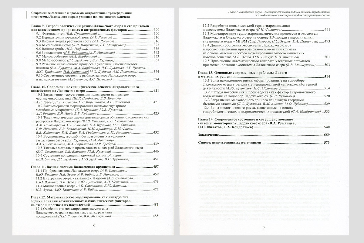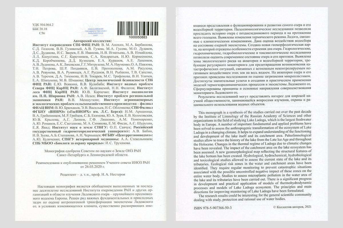 Современное состояние и проблемы антропогенной трансформации экосистемы Ладожского озера в условиях изменяющегося климата. Москва, 2021.