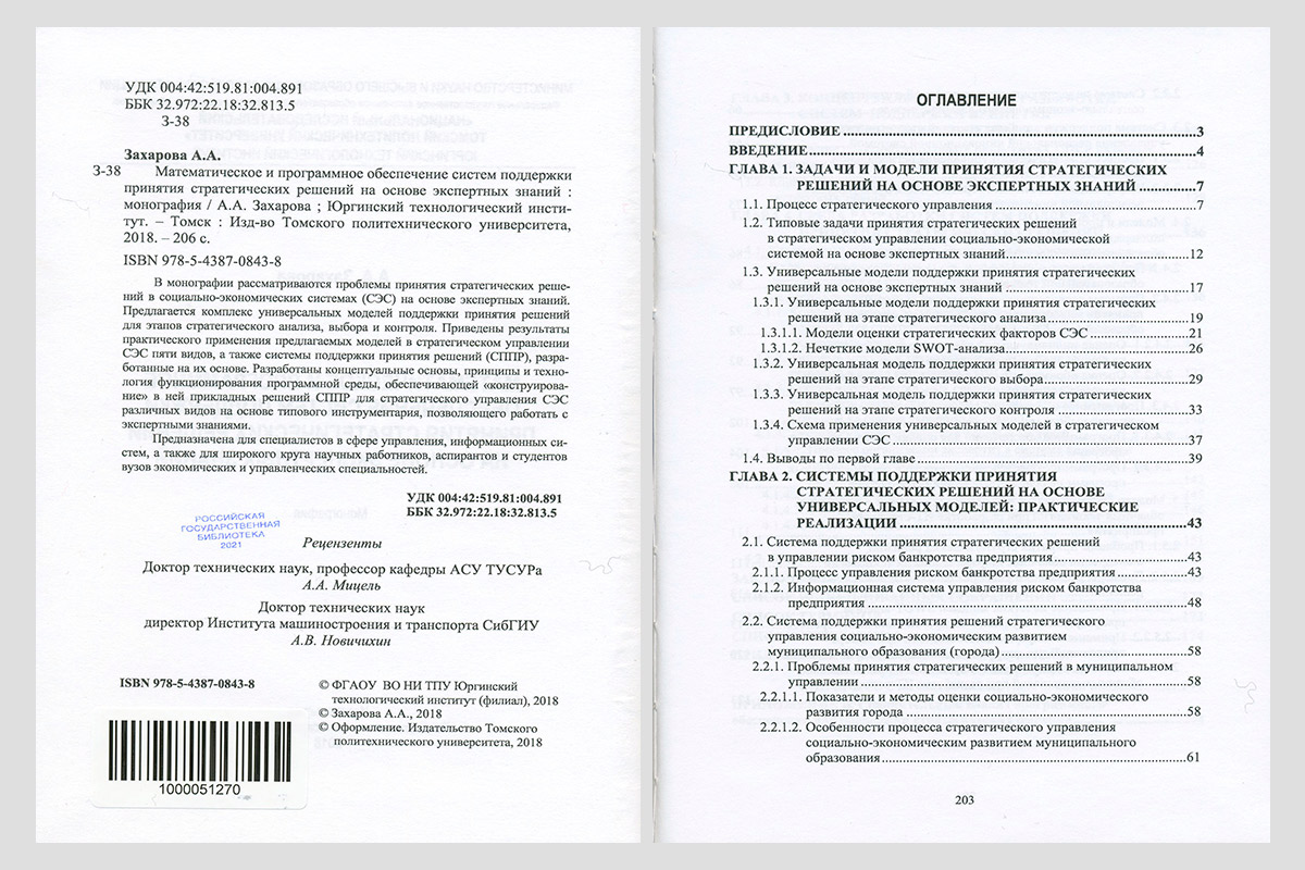 Захарова, Александра Александровна. Математическое и программное обеспечение систем поддержки принятия стратегических решений на основе экспертных знаний. Томск, 2018.