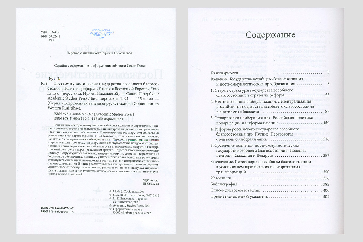 Кук, Линда. Посткоммунистические государства всеобщего благосостояния: политика реформ в России и Восточной Европе. Санкт-Петербург; Бостон, 2021.