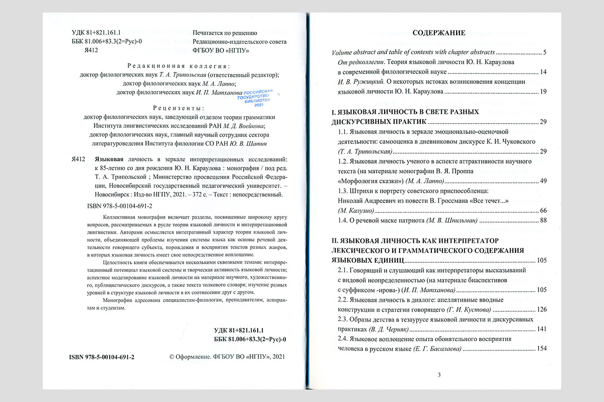 Языковая личность в зеркале интерпретационных исследований: монография: к 85-летию со дня рождения Ю. Н. Караулова. Новосибирск, 2021.