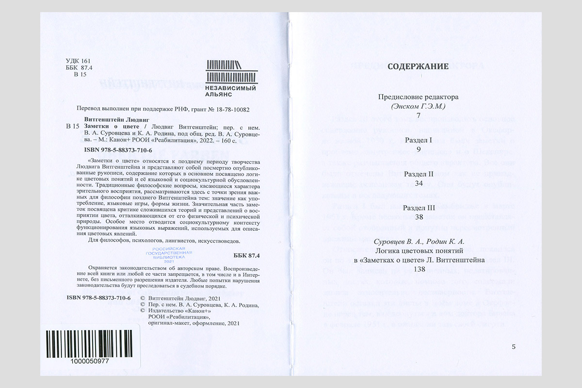 Витгенштейн, Людвиг. Заметки о цвете. Москва, 2022.