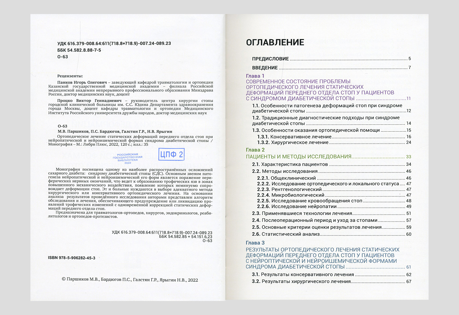 Ортопедическое лечение статических деформаций переднего отдела стоп при нейропатической и нейроишемической формах синдрома диабетической стопы. Москва, 2022
