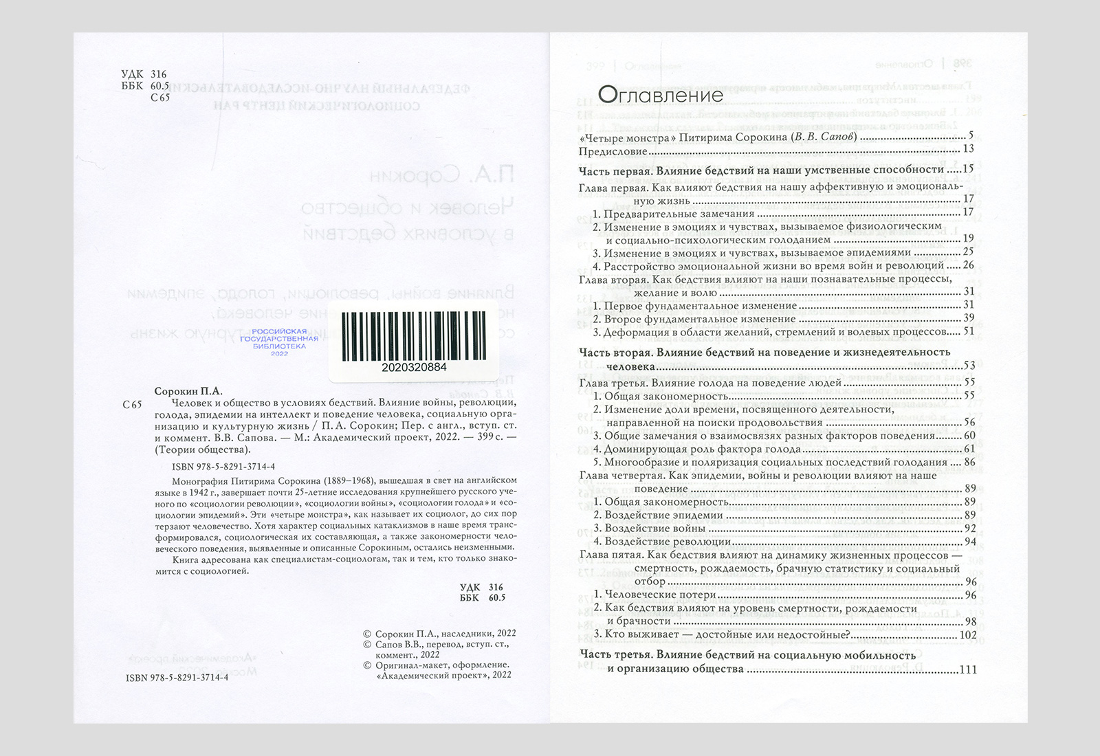 Сорокин, Питирим Александрович. Человек и общество в условиях бедствий. Москва, 2022