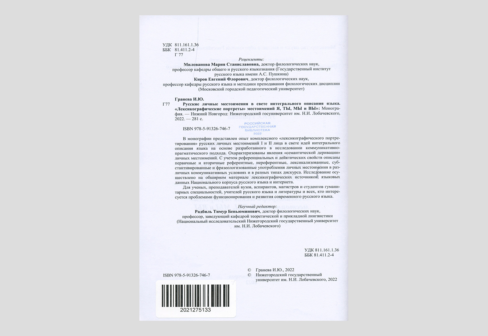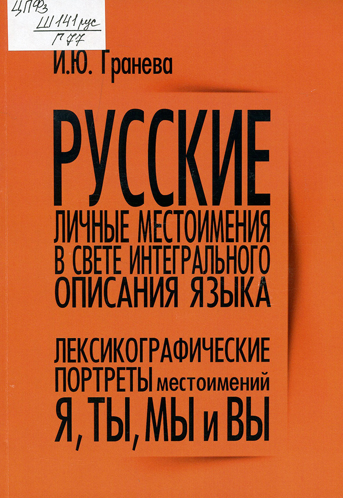 Гранева, Ирина Юрьевна. Русские личные местоимения в свете интегрального описания языка. «Лексикографические портреты» местоимений Я, Ты, Мы и Вы. Нижний Новгород, 2022