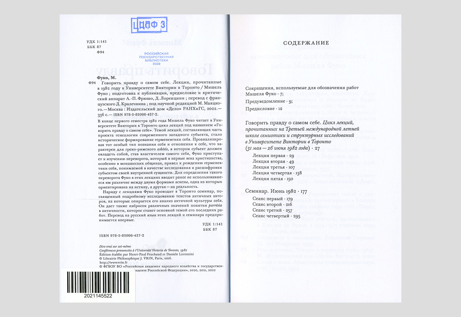 Фуко, Мишель. Говорить правду о самом себе: лекции, прочитанные в 1982 году в Университете Виктории в Торонто. Москва, 2022