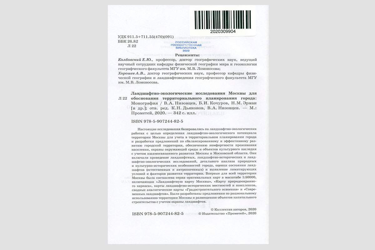 Ландшафтно-экологические исследования Москвы для обоснования территориального планирования города. Москва, 2020.