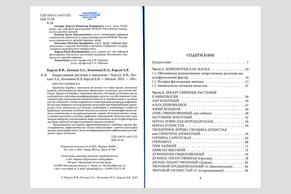 Лекарственные растения в микологии. Москва, 2022.