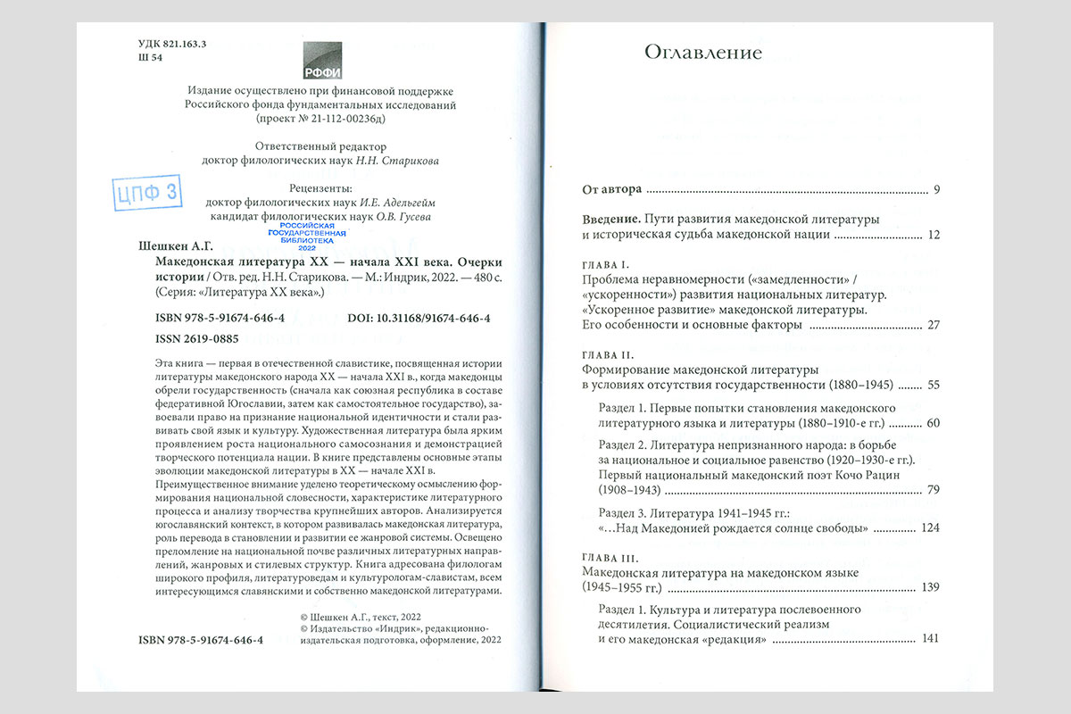 Шешкен, Алла Геннадьевна. Македонская литература XX — начала XXI века. Очерки истории. Москва, 2022.