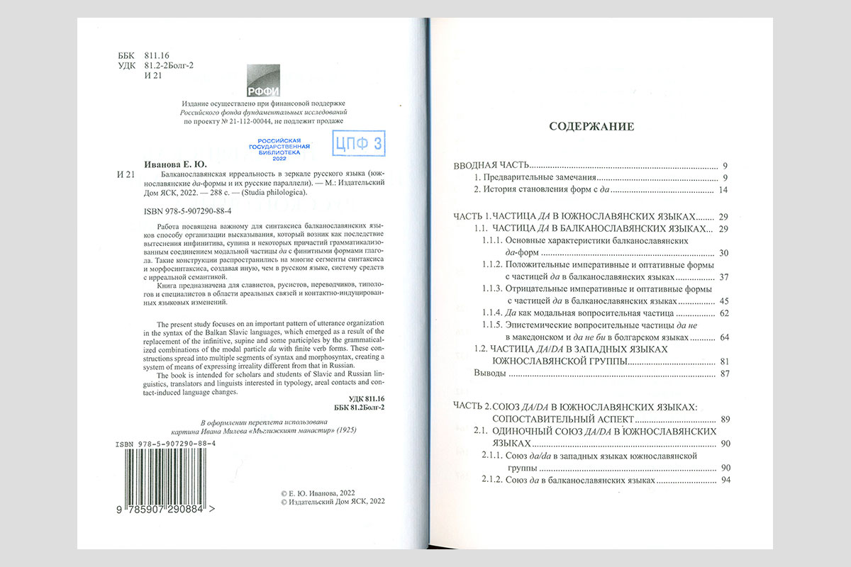 Иванова, Елена Юрьевна. Балканославянская ирреальность в зеркале русского языка (южнославянские да-формы и их русские параллели). Москва, 2022.
