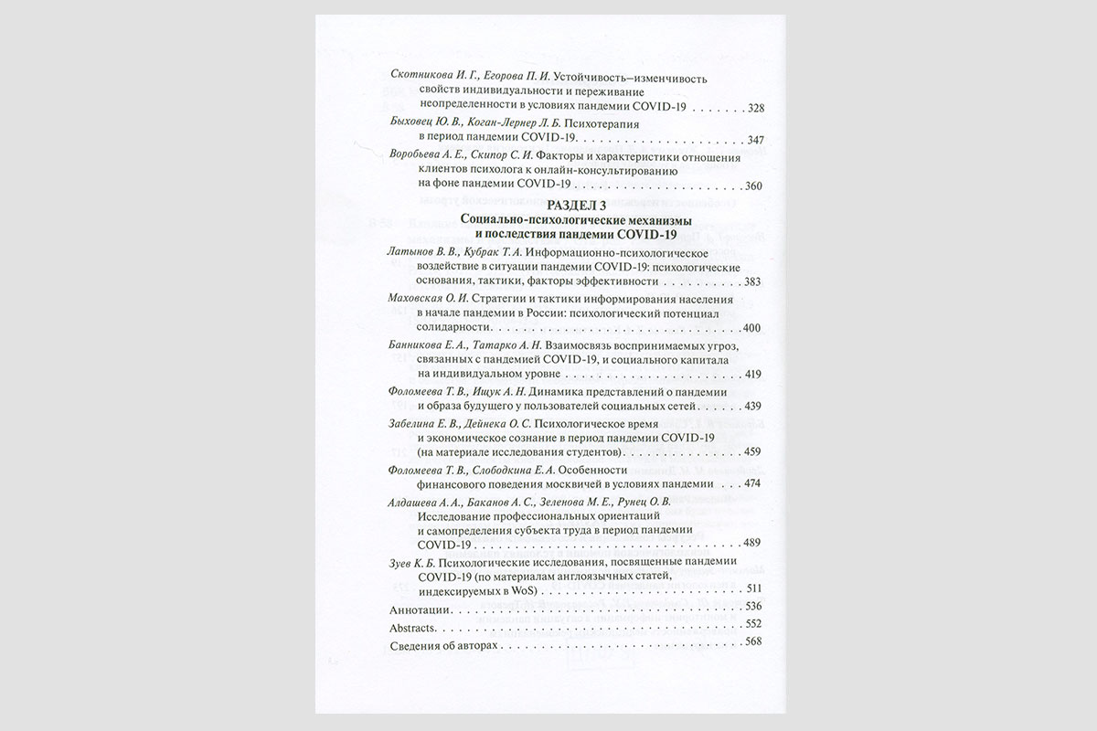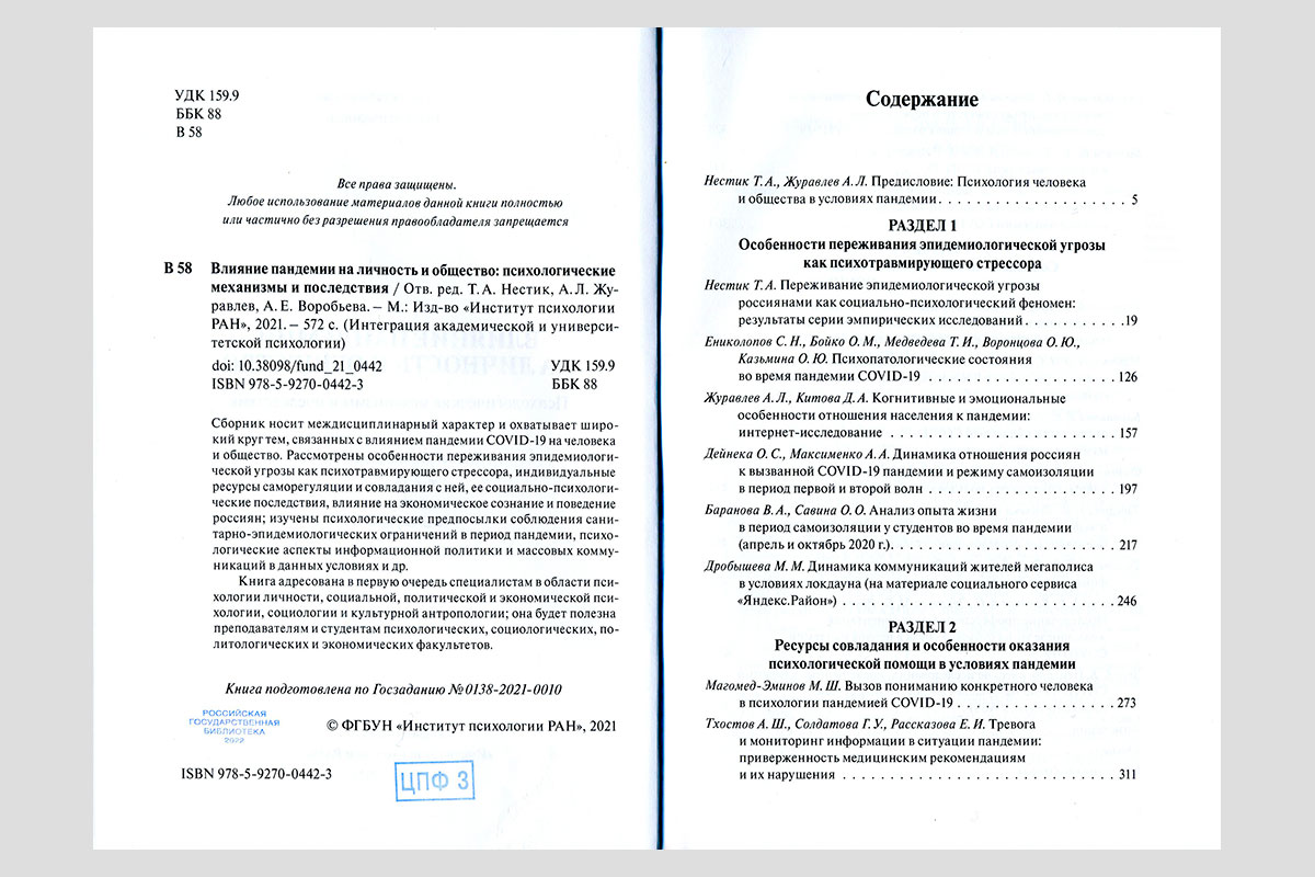 Влияние пандемии на личность и общество: психологические механизмы и последствия. Москва, 2021.