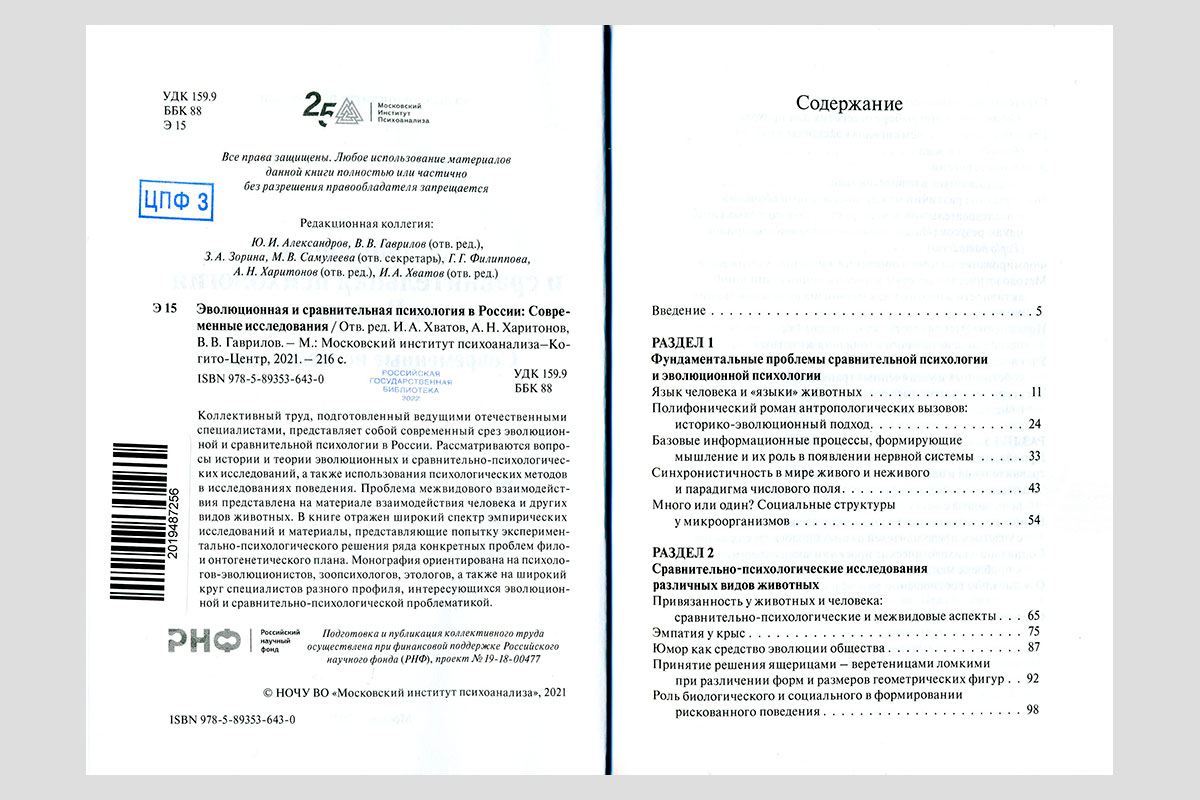 Эволюционная и сравнительная психология в России. Современные исследования. Москва, 2021.