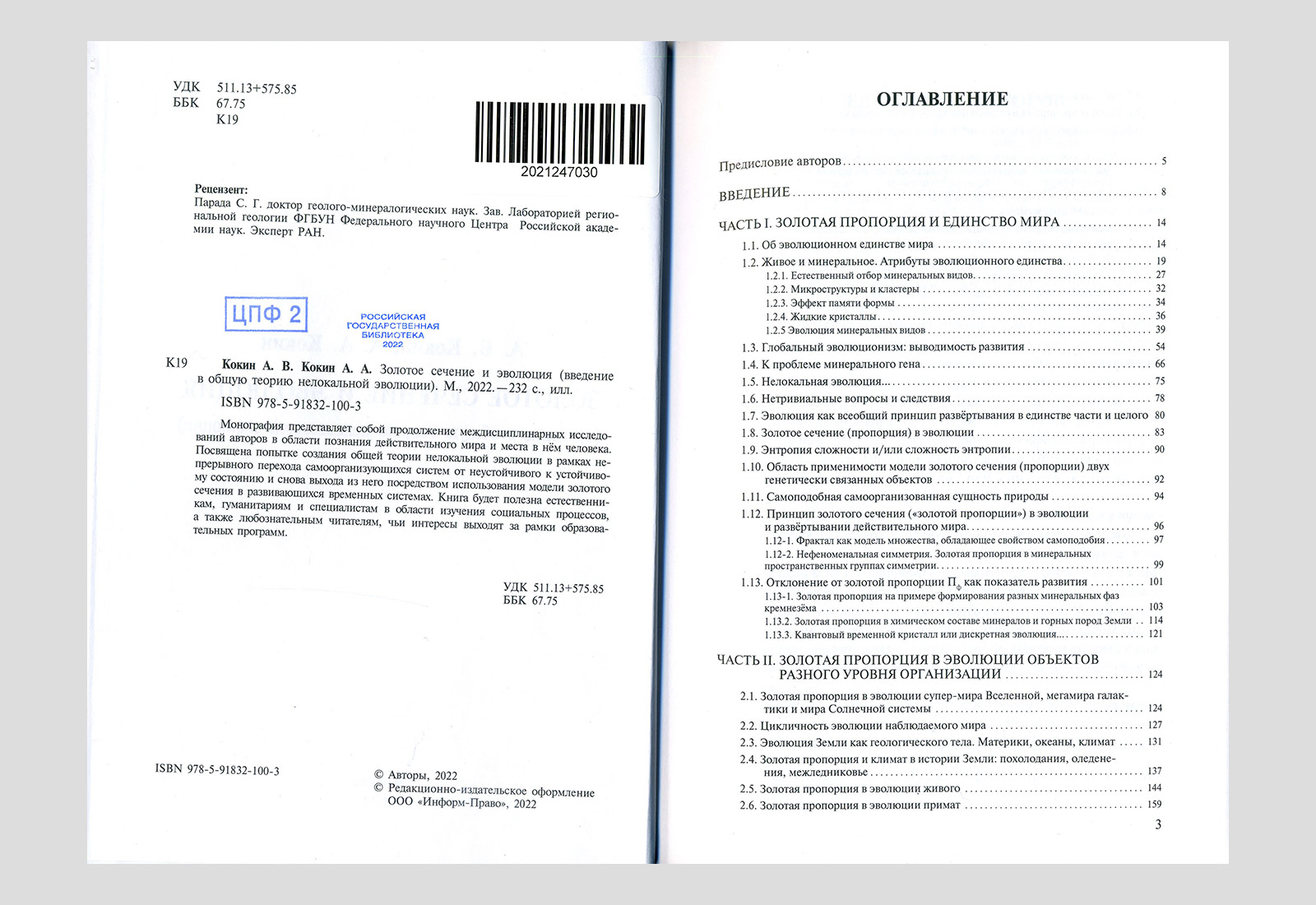 Кокин, Александр Васильевич. Золотое сечение и эволюция (введение в общую теорию нелокальной эволюции). Москва, 2022