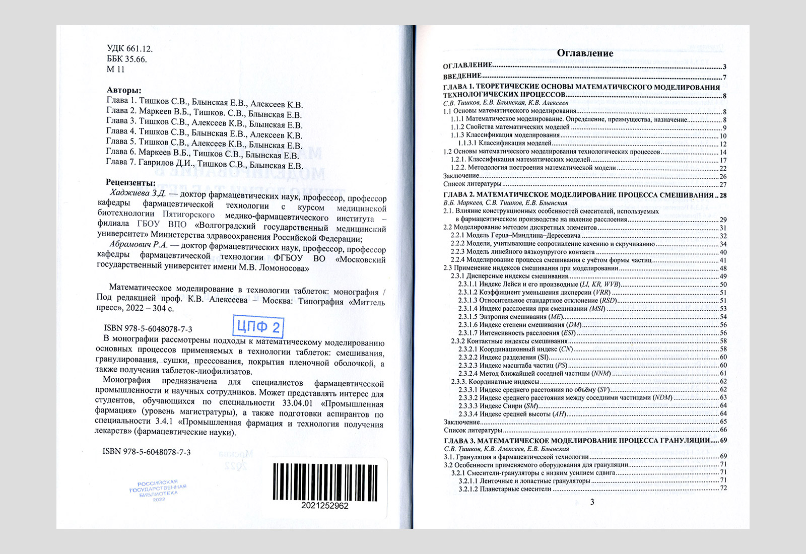 Математическое моделирование в технологии таблеток. Москва, 2022