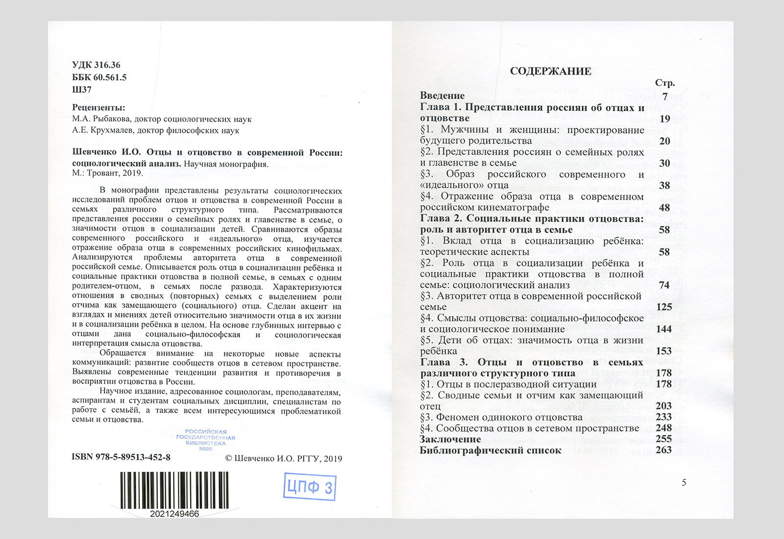 Шевченко, Ирина Олеговна. Отцы и отцовство в современной России: социологический анализ. Москва, 2019
