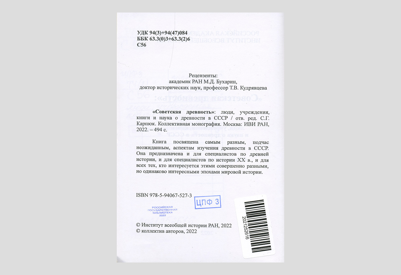 «Советская древность»: люди, учреждения, книги и наука о древности в СССР. Москва, 2022