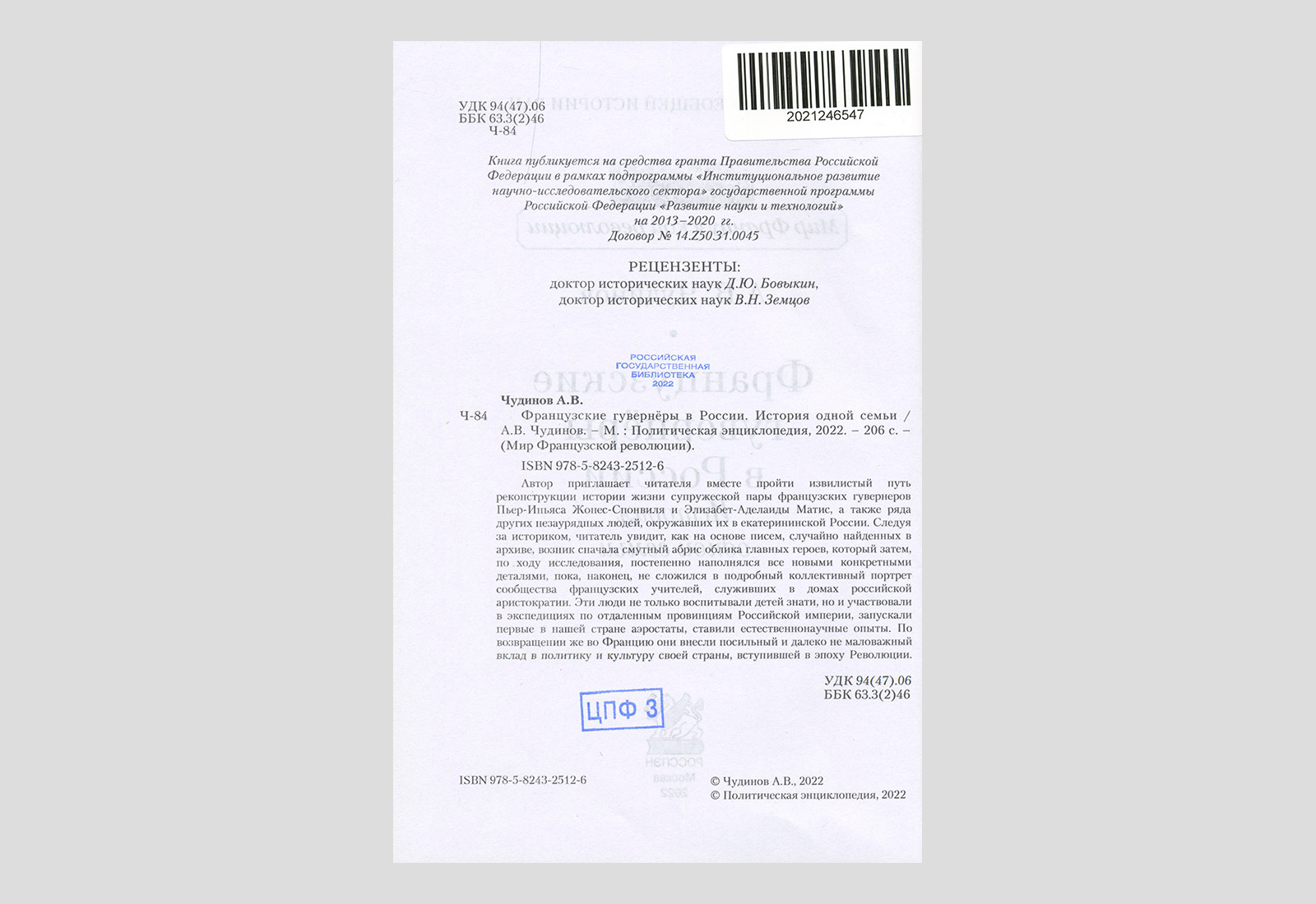 Чудинов, Александр Викторович. Французские гувернёры в России. История одной семьи. Москва, 2022