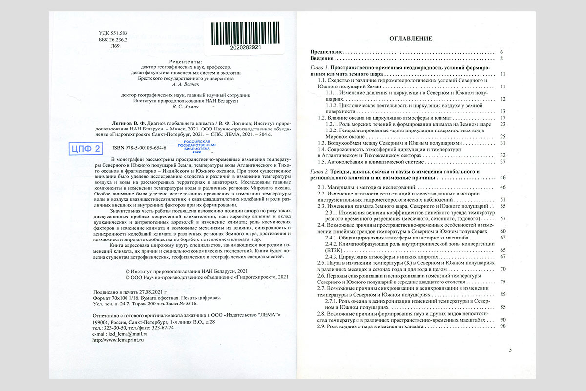 Логинов, Владимир Федорович. Диагноз глобального климата. Санкт-Петербург, 2021.