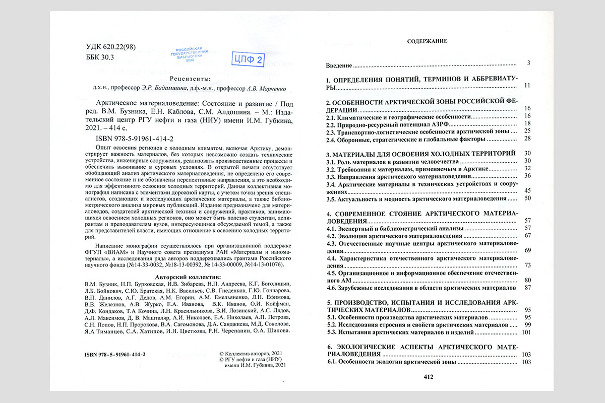 Арктическое материаловедение: состояние и развитие. Москва, 2021.