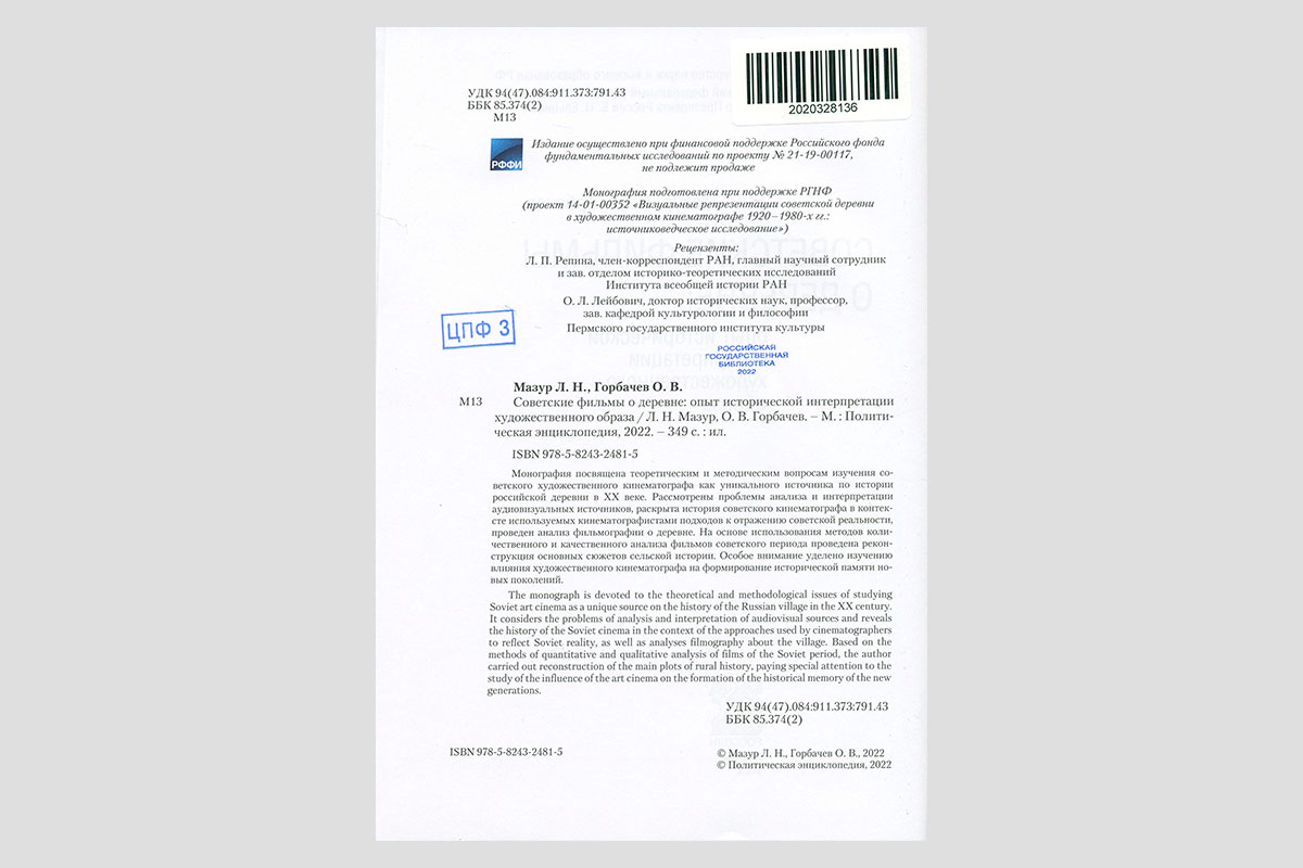 Мазур, Людмила Николаевна. Советские фильмы о деревне: опыт исторической интерпретации художественного образа. Москва, 2022.