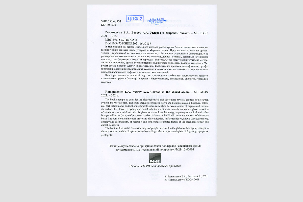 Романкевич, Евгений Александрович. Углерод в мировом океане. Москва, 2021.