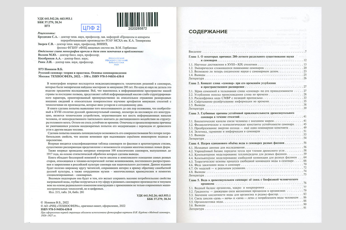 Новиков, Владимир Борисович. Русский самовар: теория и практика. Основы самовароведения. Москва, 2022.