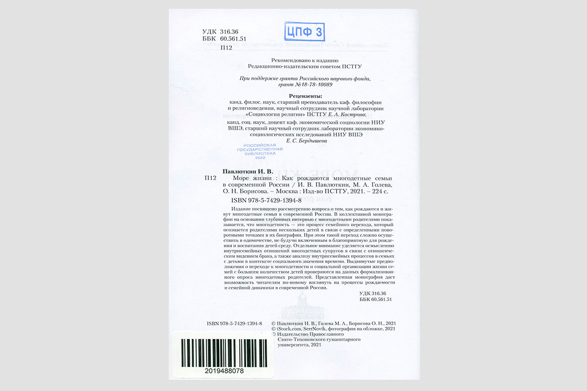 Павлюткин, Иван Владимирович. Море жизни. Как рождаются многодетные семьи в современной России. Москва, 2022.