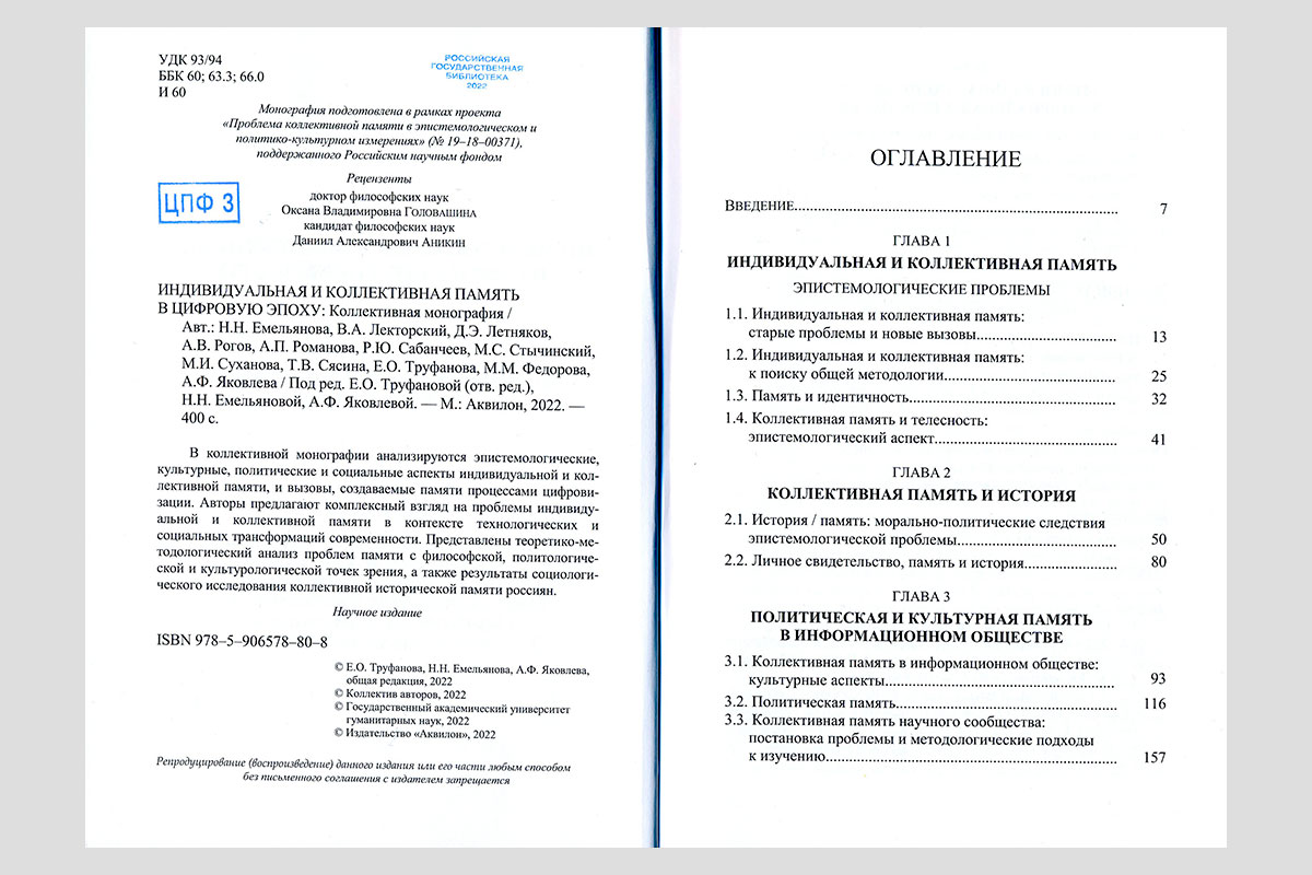 Индивидуальная и коллективная память в цифровую эпоху. Москва, 2022.