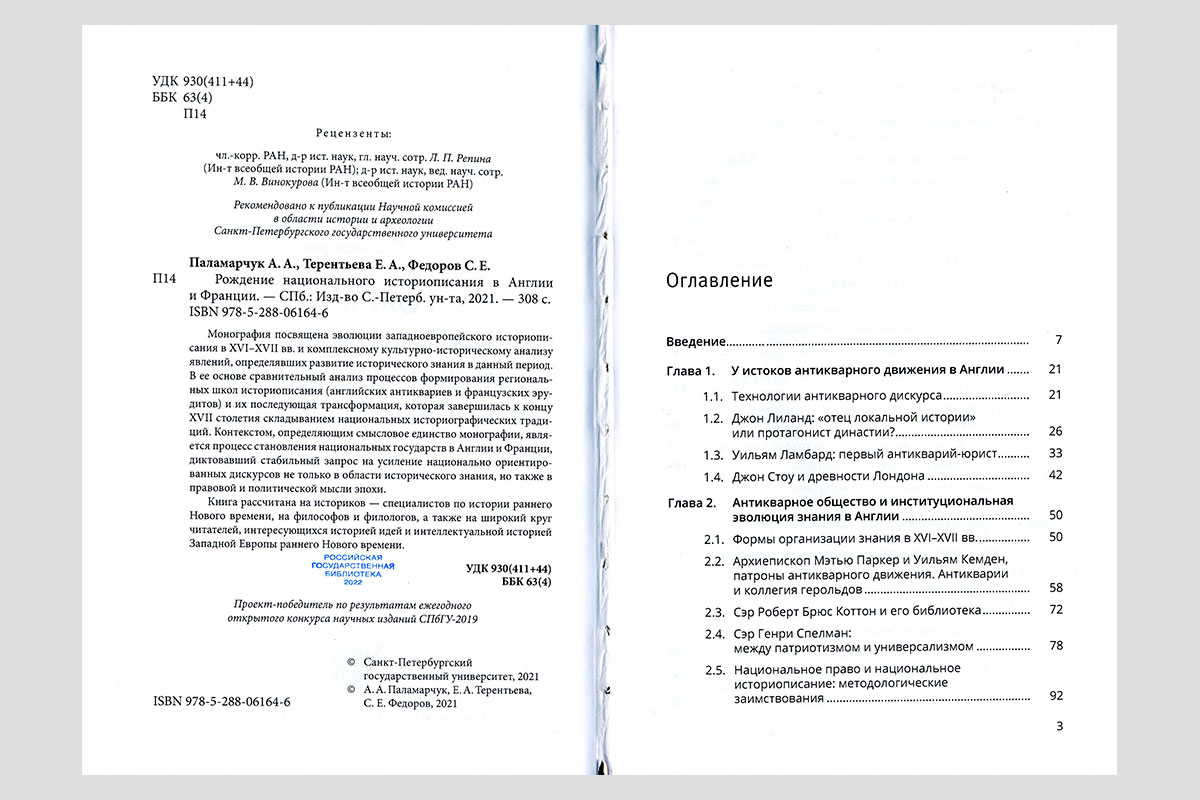 Паламарчук, Анастасия Андреевна. Рождение национального историописания в Англии и Франции. Санкт-Петербург, 2021.