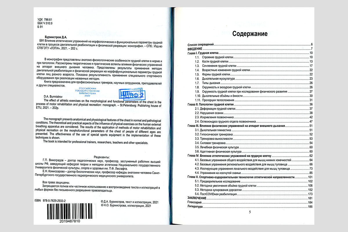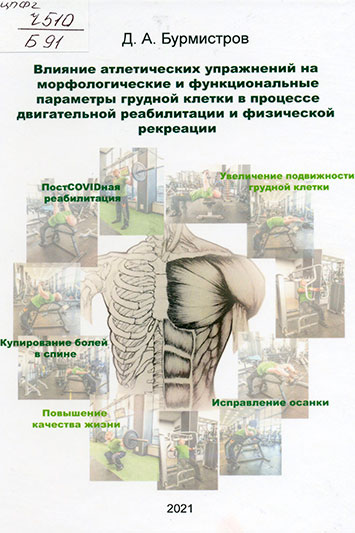 Бурмистров, Дмитрий Алексеевич. Влияние атлетических упражнений на морфологические и функциональные параметры грудной клетки в процессе двигательной реабилитации и физической рекреации. Санкт-Петербург, 2021.