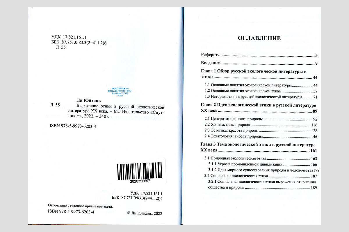 Ли Юйхань. Выражение этики в русской экологической литературе XX века. Москва, 2022.